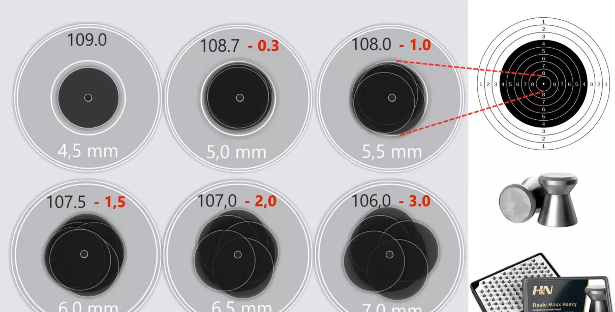 好在ISSF规定只要子弹擦到10环的边就算命中,而气步枪子弹的直径为4.5毫米,因此只要子弹落在9环的范围内,它穿出的孔基本就能覆盖靶心;当弹孔中心与10环重合,就被计算为10.9环。这就是气步枪比赛有超过10环成绩的原因。