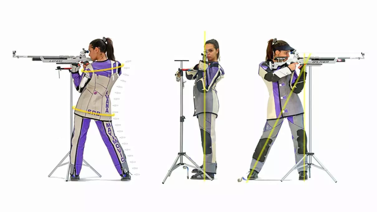 在运动员长时间保持一个姿势射击时,这套服装还能分散身体一些部分承担的压力,从而保护运动员的身体健康。
