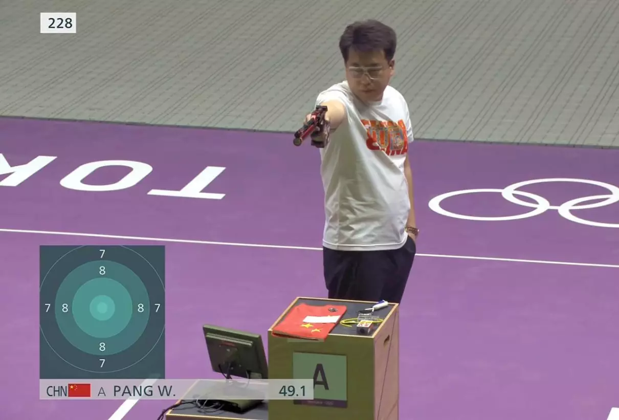 即便如此,运动员的身体依然会产生摇晃,10米气步枪比赛是无依托射击,不允许有枪架,因此运动员要用衣服将自己尽量固定起来,以保持射击姿势的稳定,当然这是在比赛规则所允许的范围内。