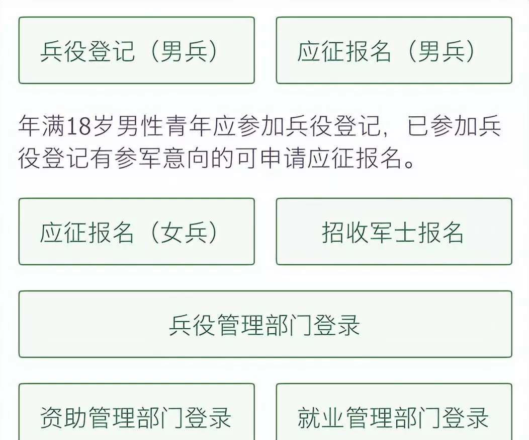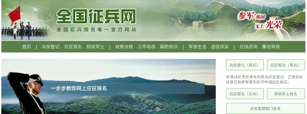 另:在全国征兵网报名时,注册时如果提示身份证号码重复,请按征兵网提示尽可能的找回已有账号;已经参加兵役登记、应征报名的可联系应征地兵役机关协助找回。