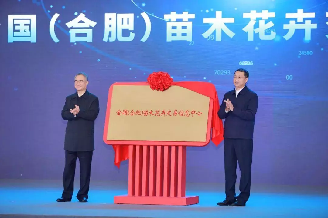 在2022中国·合肥苗木花卉交易大会上,国家林业和草原局局长关志鸥和安徽省省长王清宪共同为“全国(合肥)苗木花卉交易信息中心”揭牌。