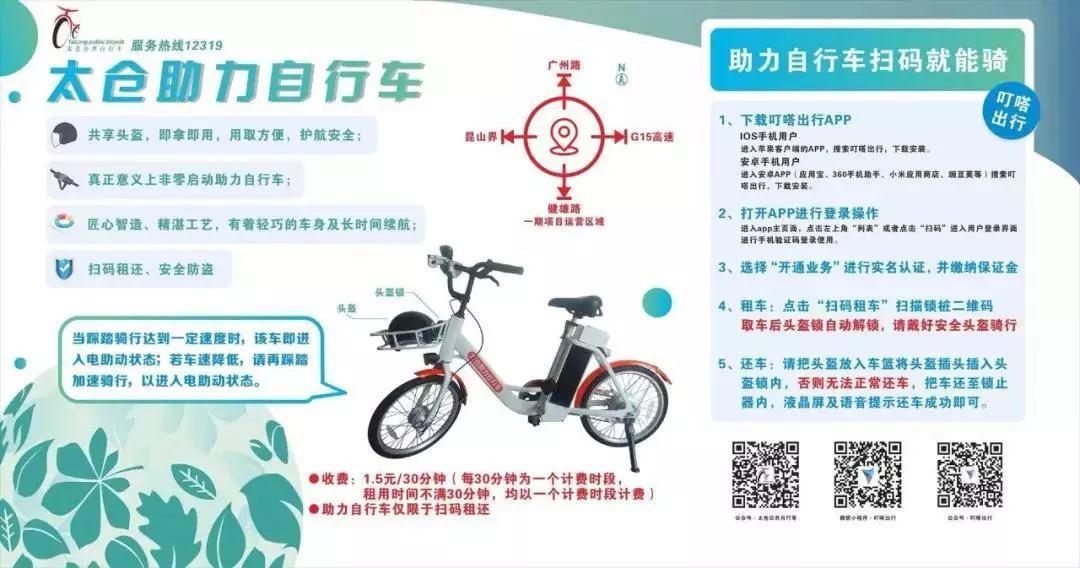 目前,太仓市公共助力自行车刚刚上线运行,市城发集团和市公共自行车服务发展有限公司也在快马加鞭优化完善运营系统,广大市民朋友们在骑行过程中有任何问题或建议,欢迎拨打热线12319,客服24小时在线哟~