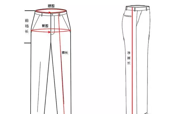 净臀围:沿臀部最丰满最突出处平衡围量一周; 裤子臀围:由腰口往下,裤子最宽处横向围量一周。购买时裤子尺寸建议比净体腰围放大1.5cm-2cm。