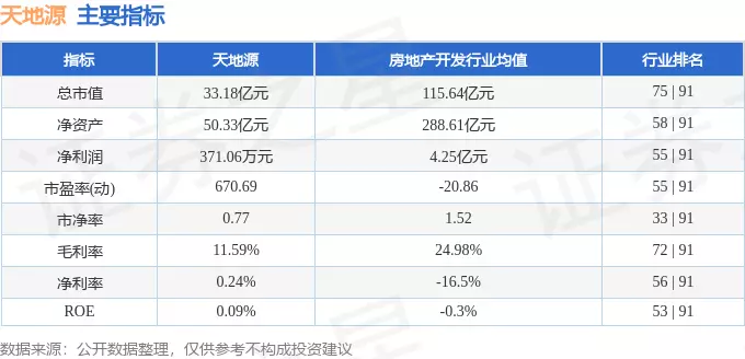天地源2023年三季报显示,公司主营收入52.12亿元,同比上升32.83%;归母净利润371.06万元,同比下降94.53%;扣非净利润659.69万元,同比下降89.95%;其中2023年第三季度,公司单季度主营收入3.73亿元,同比下降54.66%;单季度归母净利润-2448.85万元,同比下降141.52%;单季度扣非净利润-2225.92万元,同比下降139.5%;负债率87.72%,投资收益47.41万元,财务费用7795.7万元,毛利率11.59%。天地源(600665)主营业务:主要从事房地产开发与经营业务。
