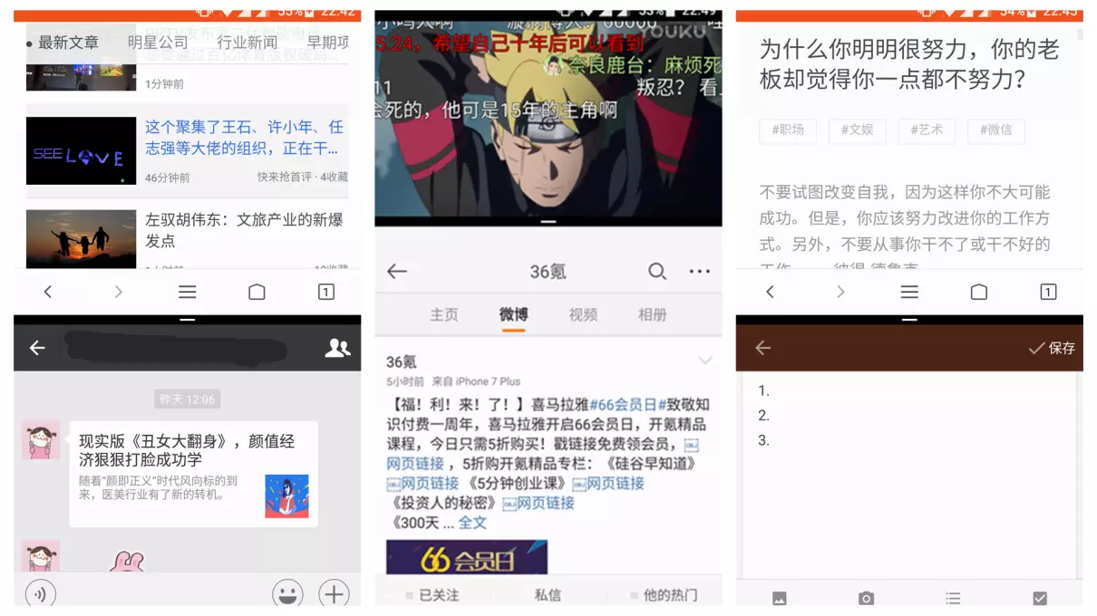 将两个应用分屏后,在小小的手机上我们也能实现一心二用,比如边在浏览器看新闻边聊天,边看视频边刷微博,边看文章边做笔记,等等,如果你真的想把手机变成一个生产力工具,分屏功能是必不可少的,不过想要分屏,当然是在屏幕尺寸越大的手机上实现起来越容易。