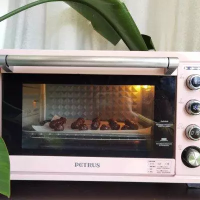 9、全部操作好,放入预热好的烤箱中层偏下。调160度,烘烤20分钟即可!烘烤的过程,可可香味飘散出来!好香啊!
