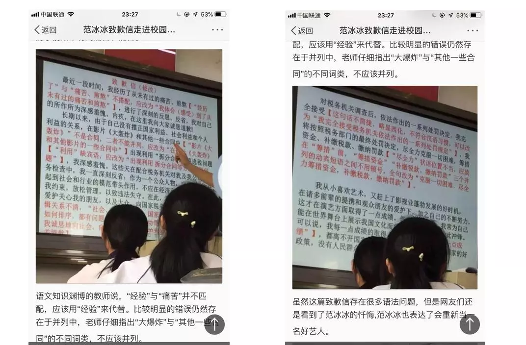 吐个槽~范冰冰的致歉就很稚嫩,如果是她本人或经纪人不应该是这种水平,所以也成了笑话案例。