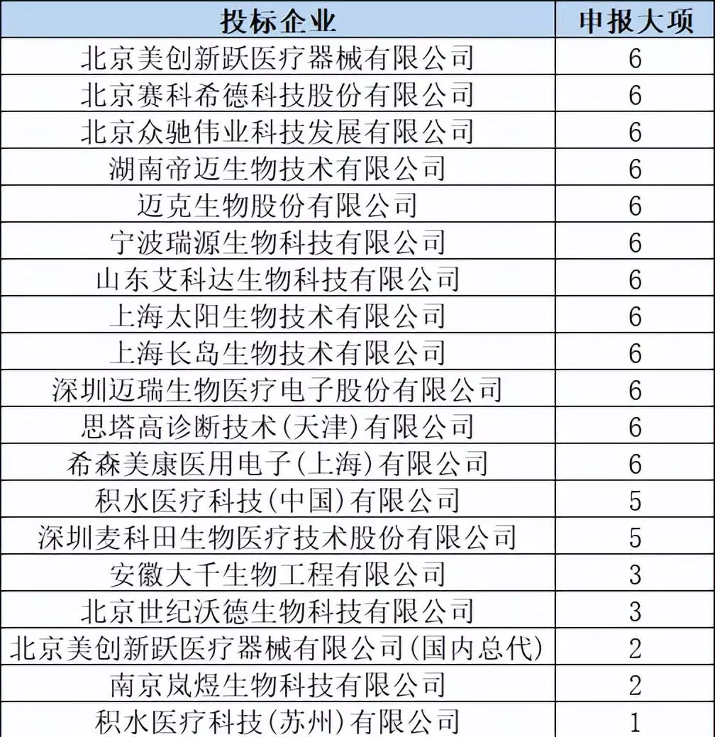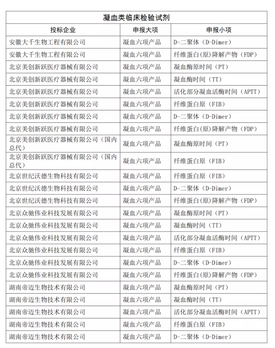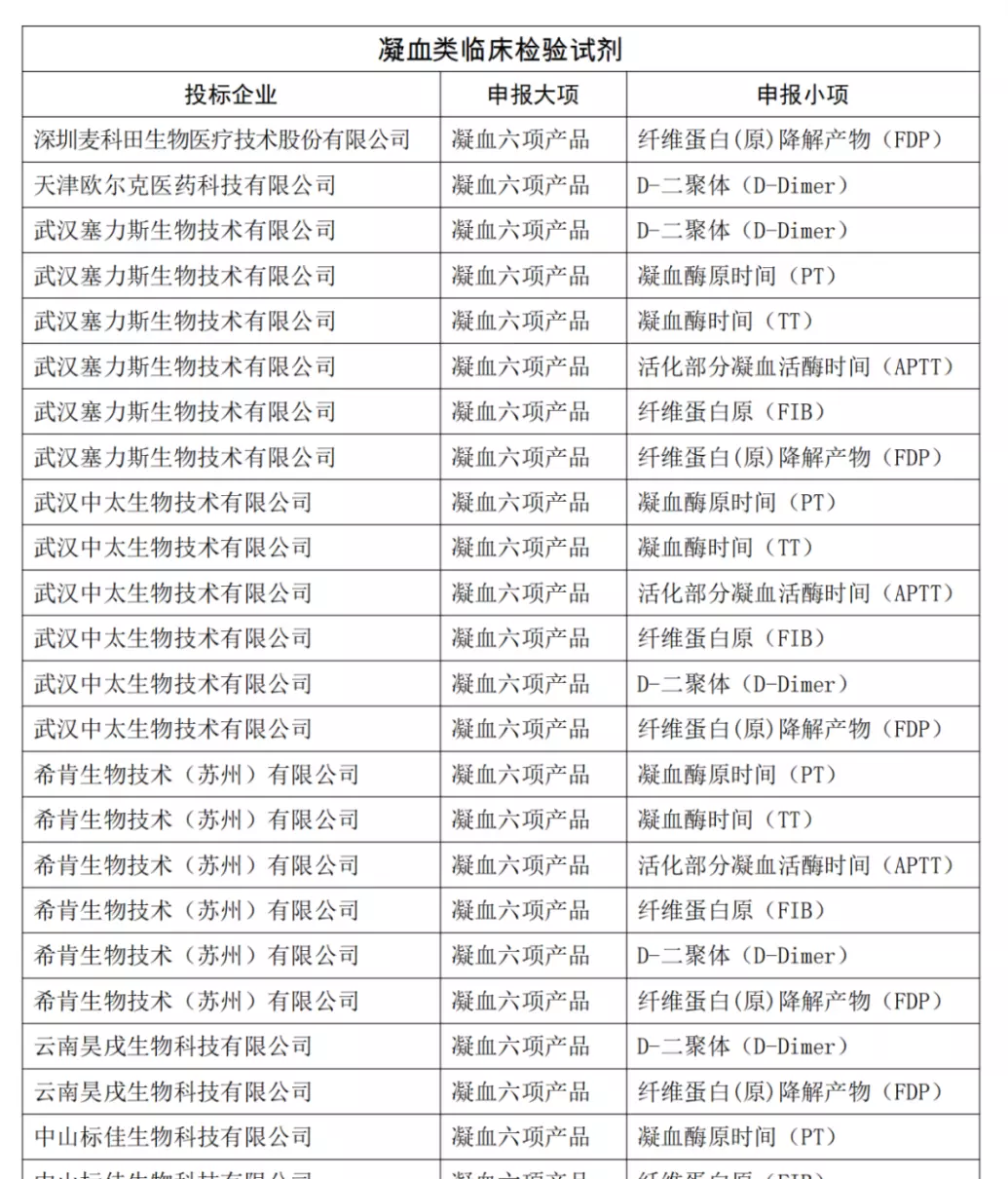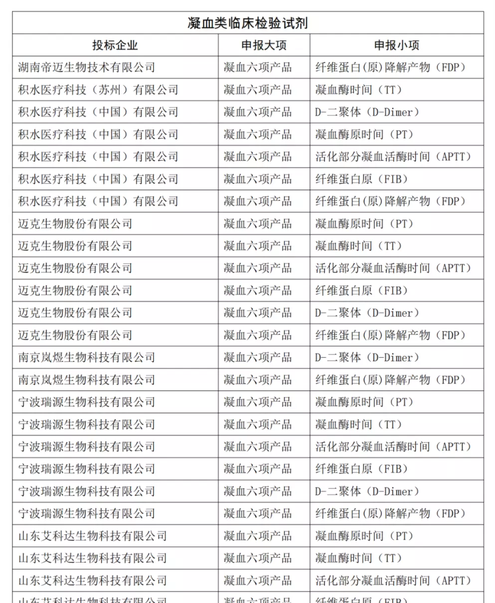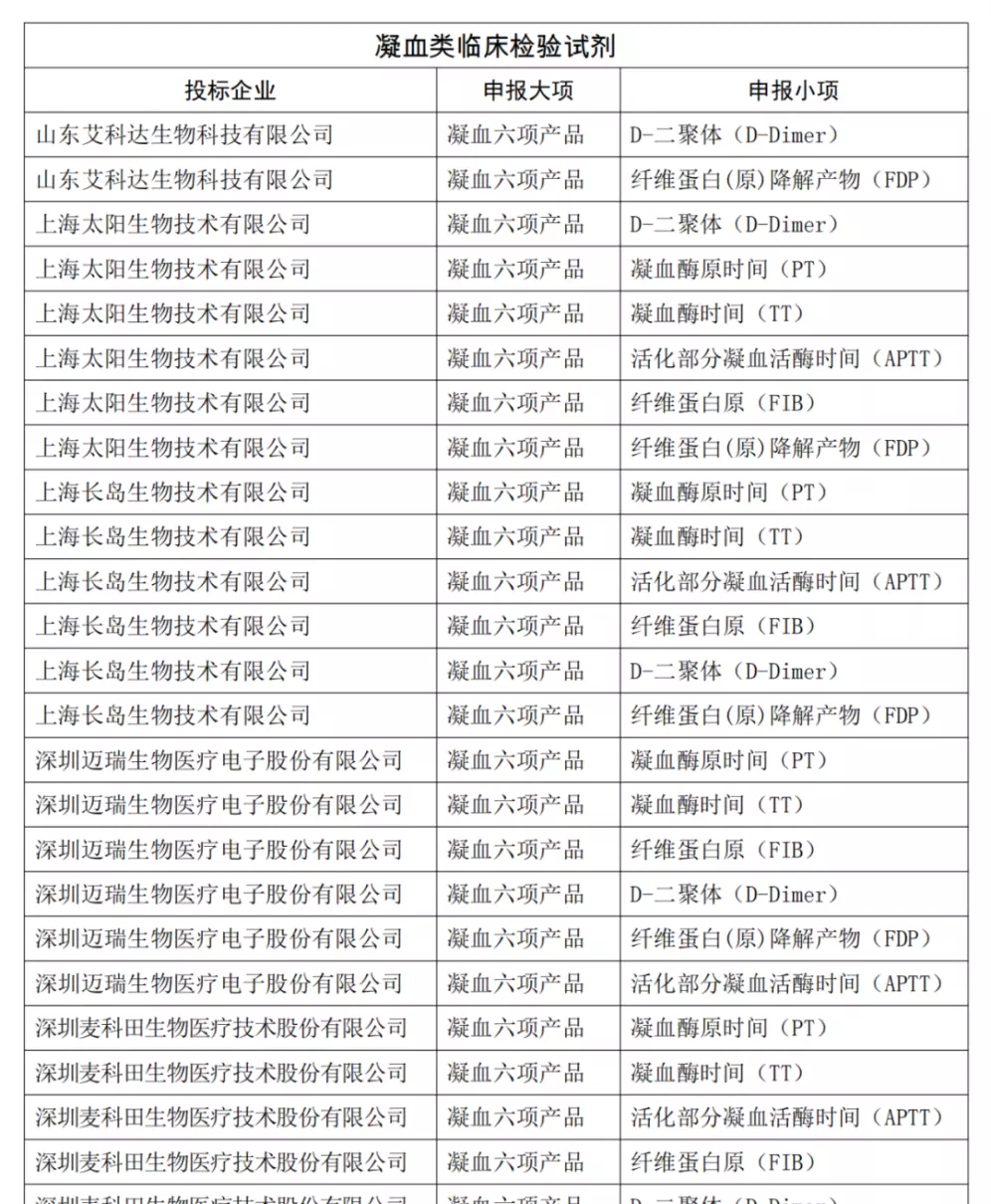 从凝血中选结果来看,北京美创新跃、北京赛科希德、北京众驰伟业、湖南帝迈生物、迈克生物、宁波瑞源、山东艾科达、上海太阳生物、上海长岛、深圳迈瑞、思塔高、希森美康、武汉塞力斯、武汉中太、希肯生物均达到6项。