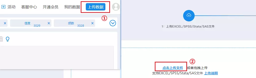 进入SPSSAU系统,将加权格式数据上传到SPSSAU系统中: