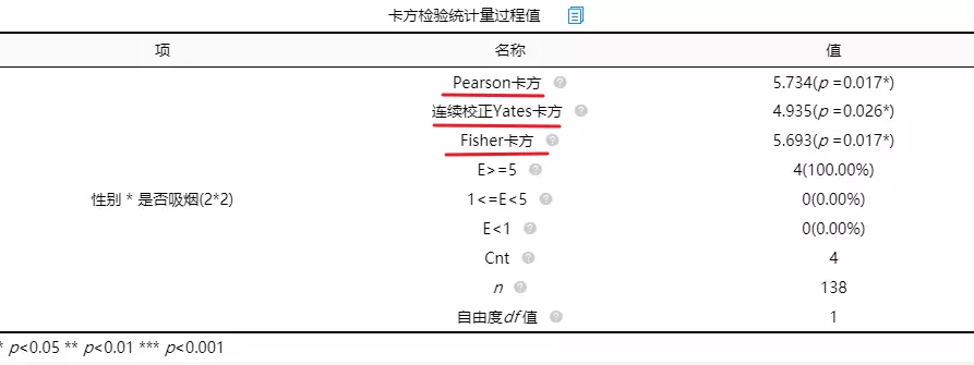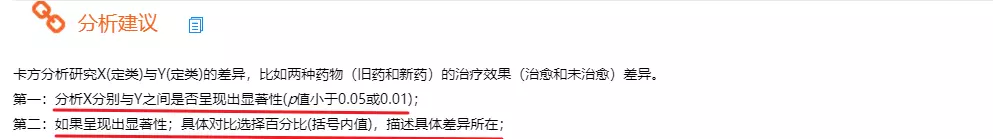 SPSSAU输出卡方检验分析结果,主要关注两个值,卡方值和p值。