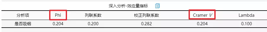 另外输出各种卡方检验统计量过程值和效应量指标。