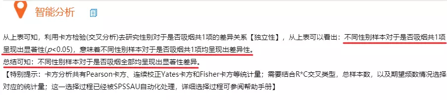 总结:可以看到,SPSS和SPSSAU两个统计分析工具卡方检验的结果是相同的,且使用SPSSAU更简单更智能更方便~