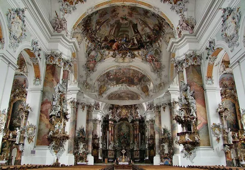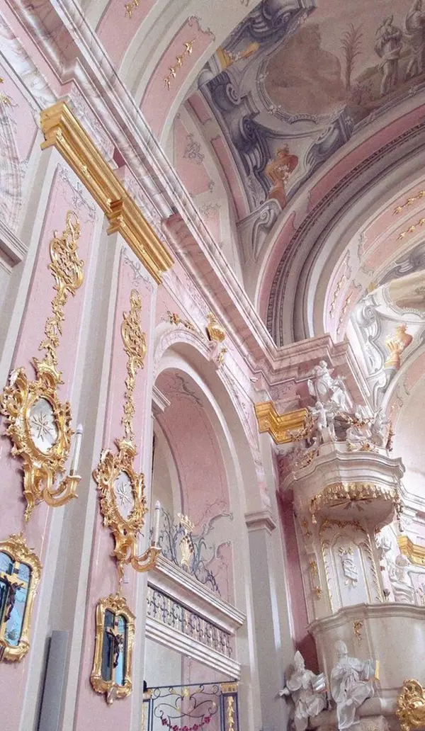 (3)巴洛克式装饰通常用于教堂内部。洛可可式很少运用于教堂