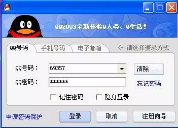 2004年的登陆界面并没有多大改变,增设了登陆状态,上线了个人网络硬盘、远程协助和qq小秘书等功能。
