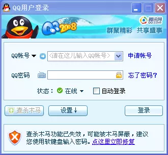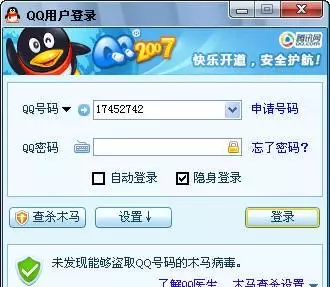 2007年登录界面,这一年上线了窗口抖动、离线文件功能。