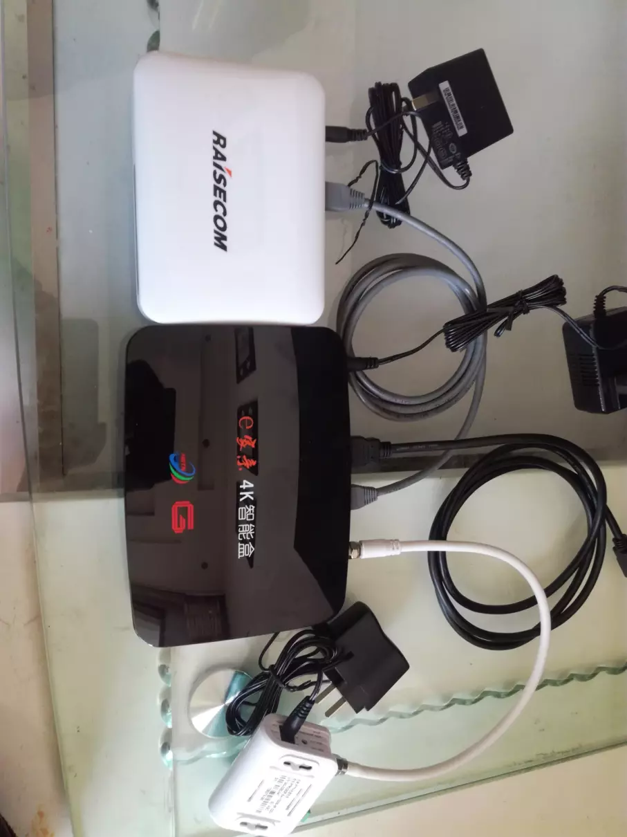 首先有以下几个设备是用户去营业厅办理业务后,营业厅免费使用的设备4K高清机顶盒(黑色的),光猫(大白盒),小光机(小白盒)